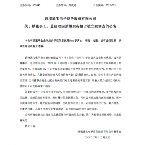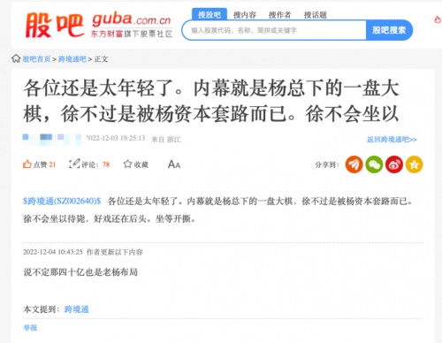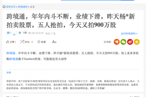 近期,跨境通的075号公告让原本低迷的资本市场再度火花四溅,跨境通原董事长徐佳东通过社交平台两度发声,矛头直指现任大股东杨建新,并接二连三爆料其在跨境通的经营内幕,引发媒体以及股民的广泛讨论。