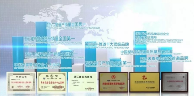 此外,还有“中国塑料管道行业最具影响力企业”“中国塑料管道行业质量放心企业”“中国塑料管道十大品牌”“海关AEO高级认证”……
