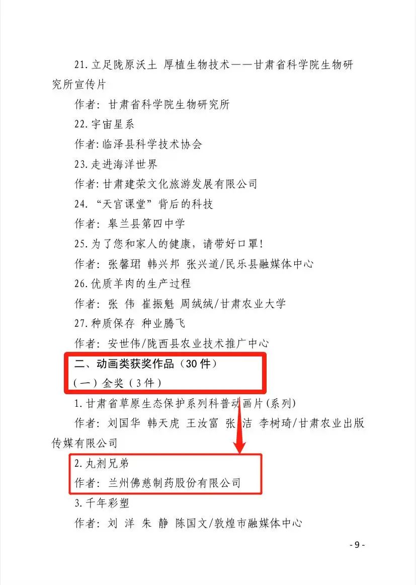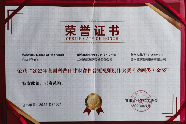 经省科协组织专家进行初评、复评、终评、公示和综合评定,佛慈制药报送的《丸剂兄弟》系列作品荣获动画类金奖。