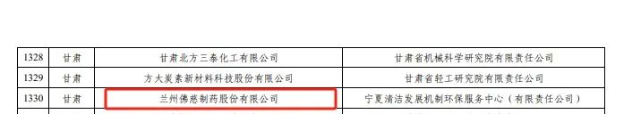 1月5日,国家工业和信息化部办公厅公布了2023年度绿色制造名单,兰州佛慈制药股份有限公司被评为“绿色工厂”。