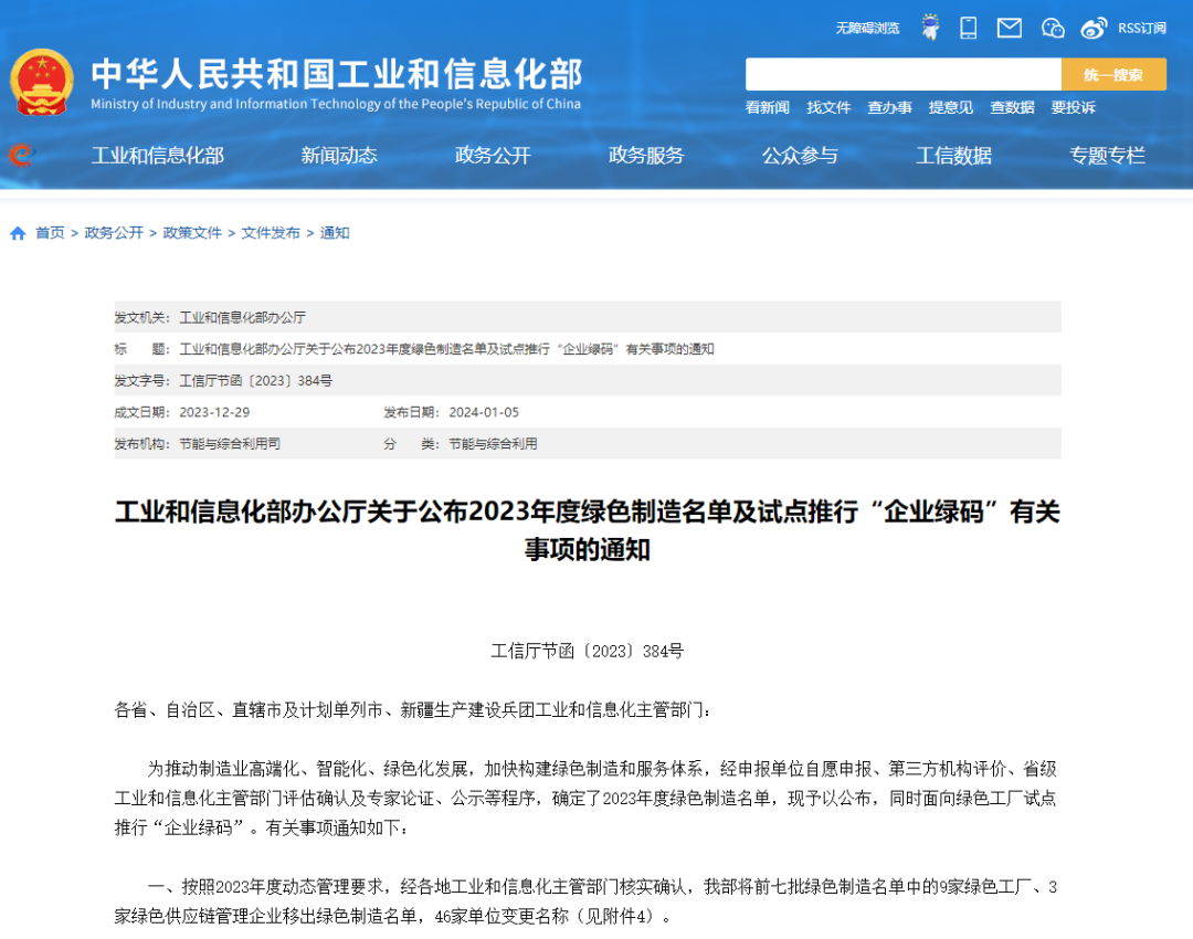 “绿色工厂”是工信部为贯彻落实《“十四五”工业绿色发展规划》《工业领域碳达峰实施方案》《关于加强产融合作推动工业绿色发展的指导意见》,加快推进绿色制造体系建设,打造绿色制造的先进典范,引领相关行业向绿色转型的重要举措。通过区、市、省各级工信部门逐级评定上报,并由工信部最终遴选确定。