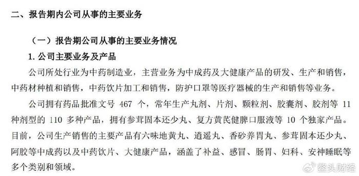 2023年年报显示,佛慈制药拥有药品批准文号467个,常年生产丸剂、片剂、颗粒剂、胶囊剂、胶剂等11种剂型的110多种产品,拥有参茸固本还少丸、复方黄芪健脾口服液等10个独家产品。