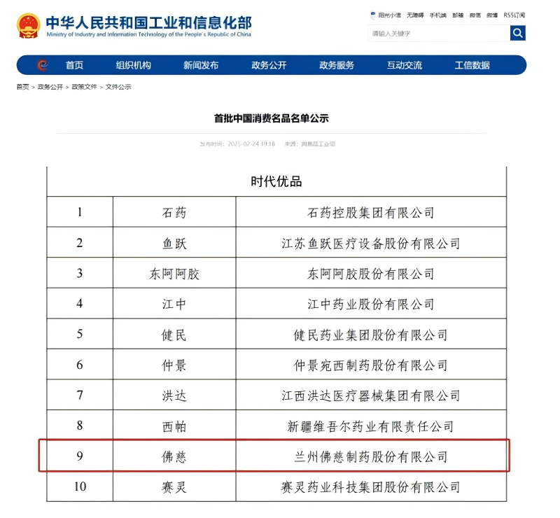 近日,工业和信息化部公示了首批中国消费名品名单,甘肃国投集团所属兰州佛慈制药股份有限公司入选医药行业的“时代优品”。百年药企历久弥新、佛慈品牌经久不衰。佛慈制药的入选,其背后是百年的深厚底蕴和不懈努力。1929年,佛慈制药在上海创立,首创中药浓缩丸剂型,开启了中药工业化生产的先河,为中药现代化发展奠定了基础。1931年产品出口日本、东南亚一带,是国内第一家将中成药推向国际市场的企业。2006年获评国家商务部首批“中华老字号企业”,2010年被评为“中国驰名商标”,2011年在深交所首发上市。近年来,佛慈制药以打造陇药精品为己任,着力在产品研发和市场拓展上狠下功夫,现有467个药品生产批准文号,常年生产110个品种、近300个品规的中成药,药品出口美国、澳大利亚、日本、巴西、中国香港等32个国家和地区,连续多年名列中国中成药出口企业十强。