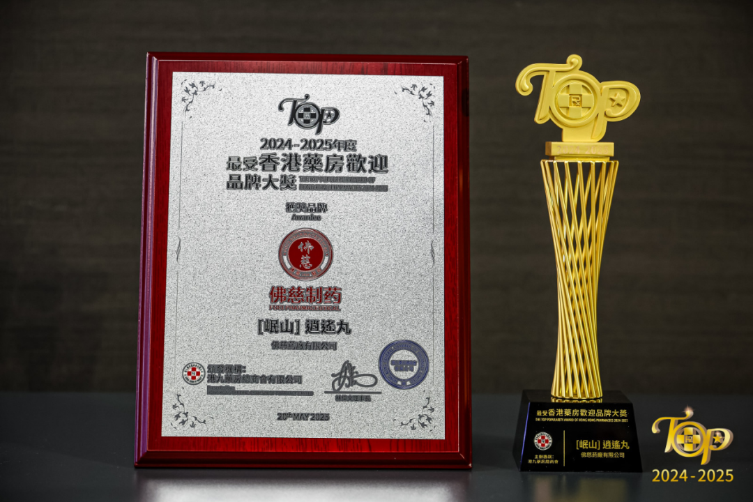 5月20日,佛慈制药“岷山牌”逍遥丸在香港特别行政区荣获“2024—2025年度最受香港药房欢迎品牌大奖”,继2023—2024年度后再度上榜获此殊荣。