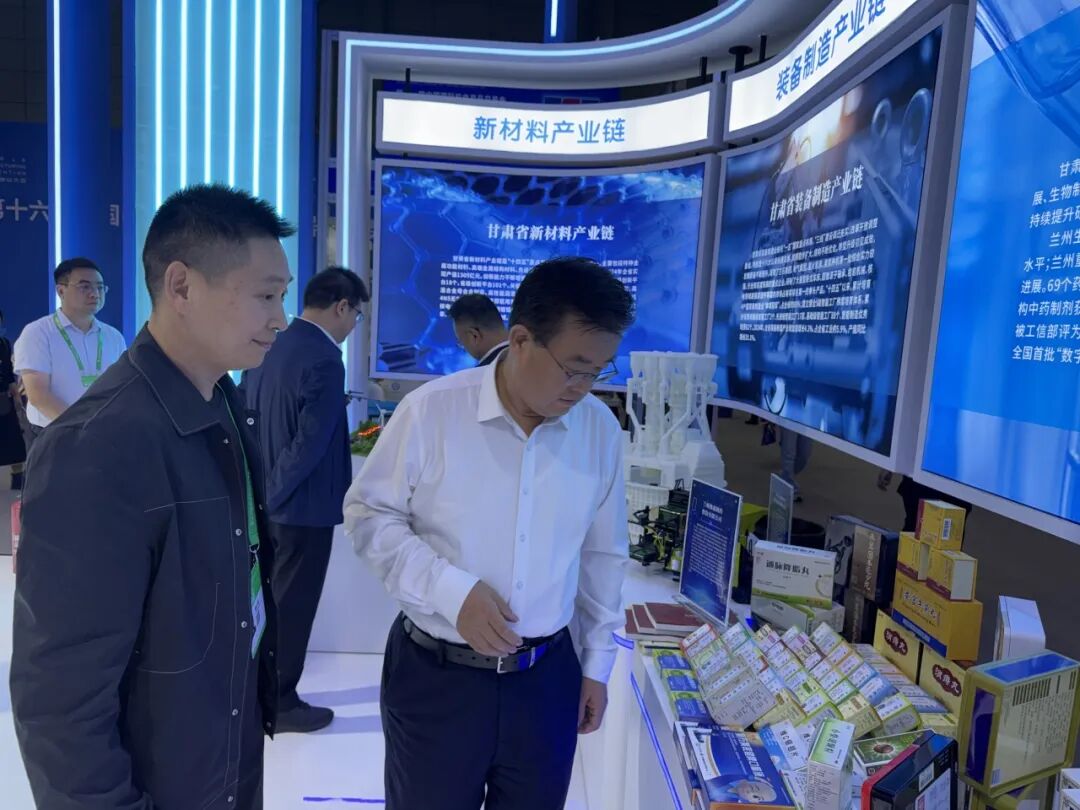 展会期间,甘肃省工业和信息化厅党组书记、厅长韩显明莅临佛慈展位参观。在佛慈制药工作人员的介绍下,详细了解了佛慈制药的产品布局。