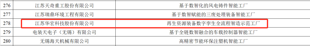热烈祝贺华宏科技股份有限公司再生资源装备数字孪生全流程智造示范工厂项目、华宏科技全资子公司吉安鑫泰科技有限公司吉安鑫泰智能工厂项目成功入选《2025年先进级智能工厂名单》!