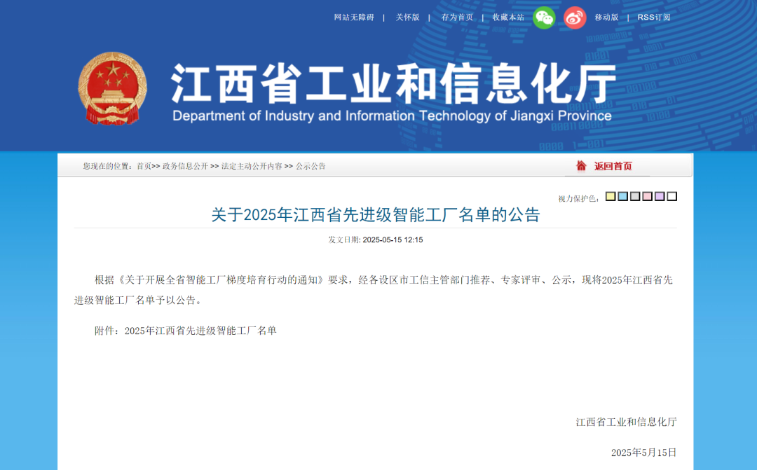 2025年江西省先进级智能工厂