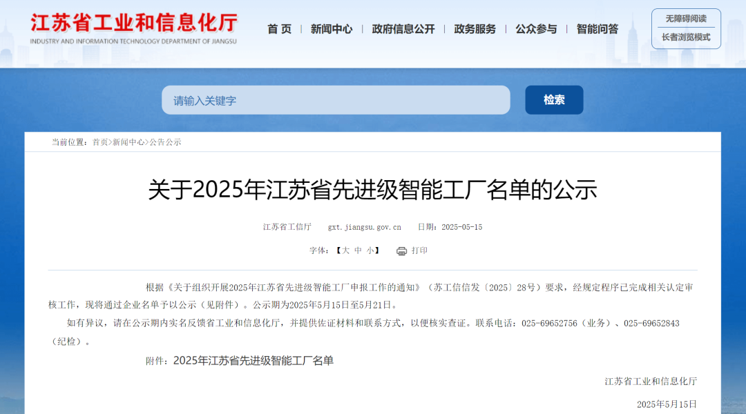 2025年江苏省先进级智能工厂