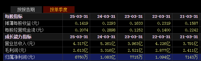 2024年,天佑德酒净利润同比减少了52.96%,净利润出现大幅下滑;同时,其营收同比增长仅有3.69%,此两项数据较2023年年报相差甚远。而从天佑德酒的营收特点来看,每年一季度都是公司业绩爆发期,但是在今年一季度,天佑德酒一季度净利润创下近5年最低,一季度仅实现净利润6750万元,净利润同比减少37.69%。值得关注的是,2024年和2022年,天佑德酒一季度净利润均超过1亿元。