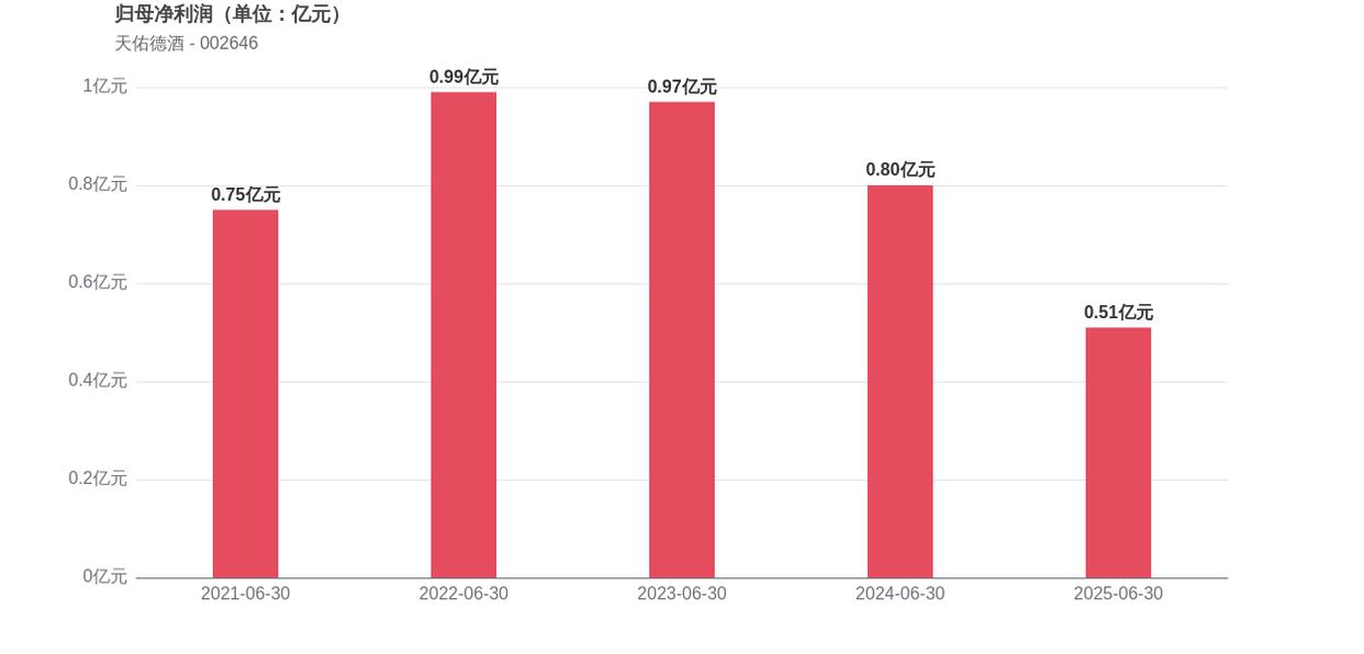 在2025年上半年,天佑德酒的经营业绩出现明显下滑,实现营业收入6.74亿元,同比下滑11.24%;实现归母净利润0.51亿元,同比下滑35.37%。