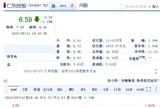 仁东控股股份有限公司(仁东控股,002647)在2022年5月12日发布了《关于股东权益变动的提示性公告》。公告内容显示,山西潞城农村商业银行股份有限公司于5月10日通过大宗交易的方式减持公司股份300,000股,占公司总股本的0.05%。本次权益变动属于仁东控股股份有限公司持股5%以上股东减持股份,不触及要约收购。变动后,山西潞城农村商业银行股份有限公司持有公司股份比例降至 5%以下。不会导致公司控股股东及实际控制人发生变更。