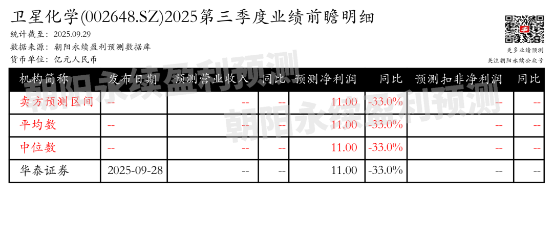 截至2025年09月29日,根据朝阳永续季度业绩前瞻数据: