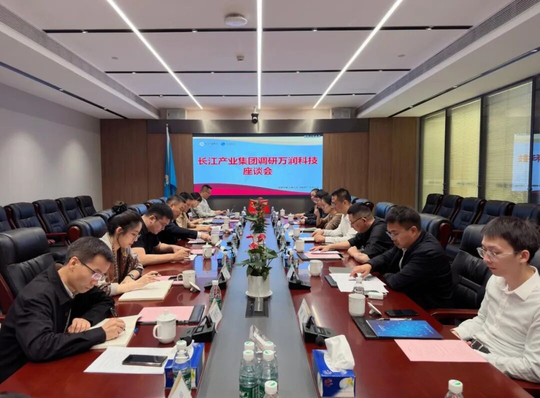 集团投资管理部、资金中心,长江产投、长江创投、长江产融资本相关负责人;万润科技战略投资部、运营管理部(科技创新部)、党群工作部、人力资源部、综合办公室、资产财务部、法务审计部、证券事务部相关负责人参加座谈。