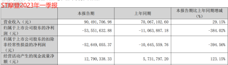 季报显示,2023年一季度,ST摩登在营收增长近三成的情况下,净利润和扣非净利润亏损规模均扩大将近4倍。如此趋势,ST摩登2023年扭亏为盈的希望渺茫。