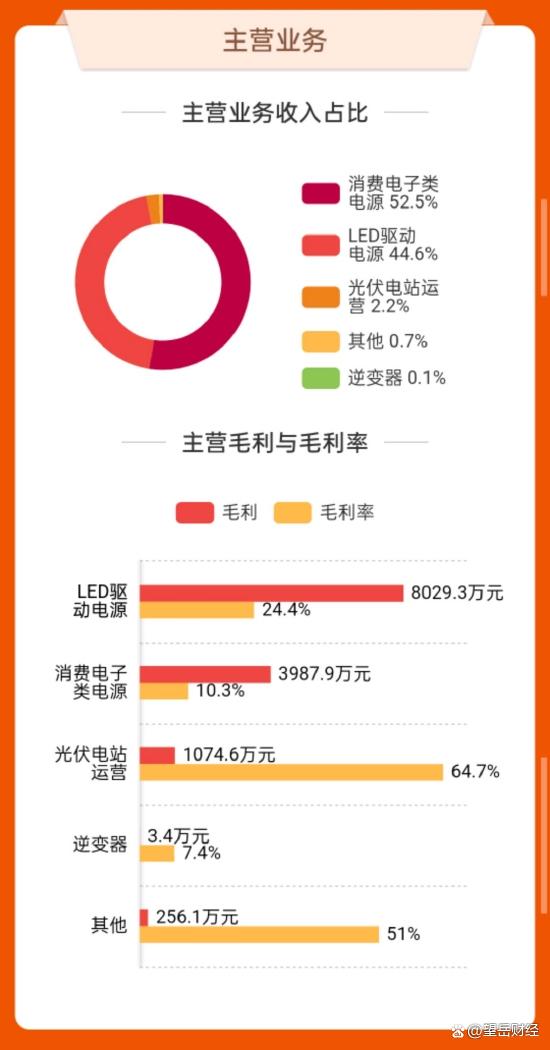 从产品类别来看,SPS开关电源产品收入占比仍为最高,为52.45%,报告期内营收3.90亿元,同比下降7.12%;产品毛利率为10.28%,同比微增0.39%。LED驱动电源营收3.30亿元,同比增长9.23%,占营收比重从去年同期的40.78%提升至44.56%;产品毛利率为24.36%,同比增长1.80%。