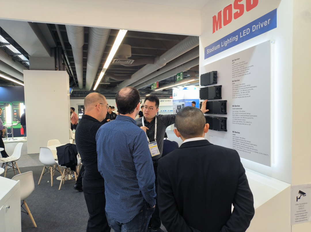 茂硕电源作为全球电源行业佼佼者,一直致力于创新和品质的追求,始终聚焦发展LED智能驱动电源、消费电子类电源、光伏发电及储能业务,在此次展会中充分展示了公司强大的技术实力、产品优势和市场潜力。公司常务副总裁兼茂硕电子总经理聂锋先生率队,与工业照明驱动事业部总经理伍飞宇女士,茂硕电子产品副总经理冯涌波先生以及欧洲地区销售同事一同,热情接待了来自世界各地的客商。