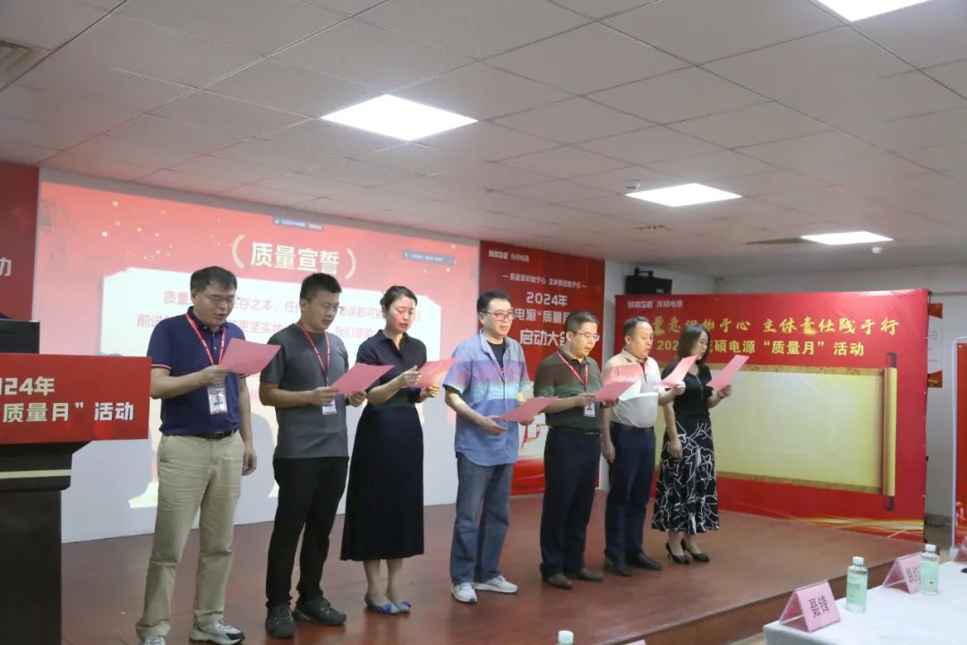 最后,在袁总的带领下,公司高层领导及全体人员进行了庄重的质量宣誓与签名仪式,共同承诺:“快速解决问题,深究问题根因;举一反三,系统改进,始终坚持质量优先;交付一流产品,树立标杆企业。”这一庄严承诺不仅彰显了茂硕电源对卓越品质的不懈追求,也进一步激发了员工参与质量管理的积极性和主动性。