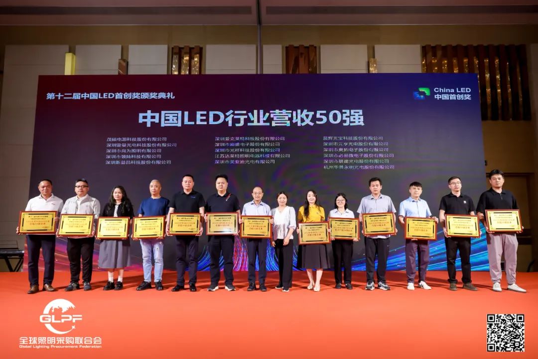 颁奖现场,茂硕电源凭借稳健的市场业绩,成功跻身中国LED行业营收50强;凭借 200 余项专利及主导/参与制定十余项标准的创新成果,荣登中国LED行业知识产权50强榜单。