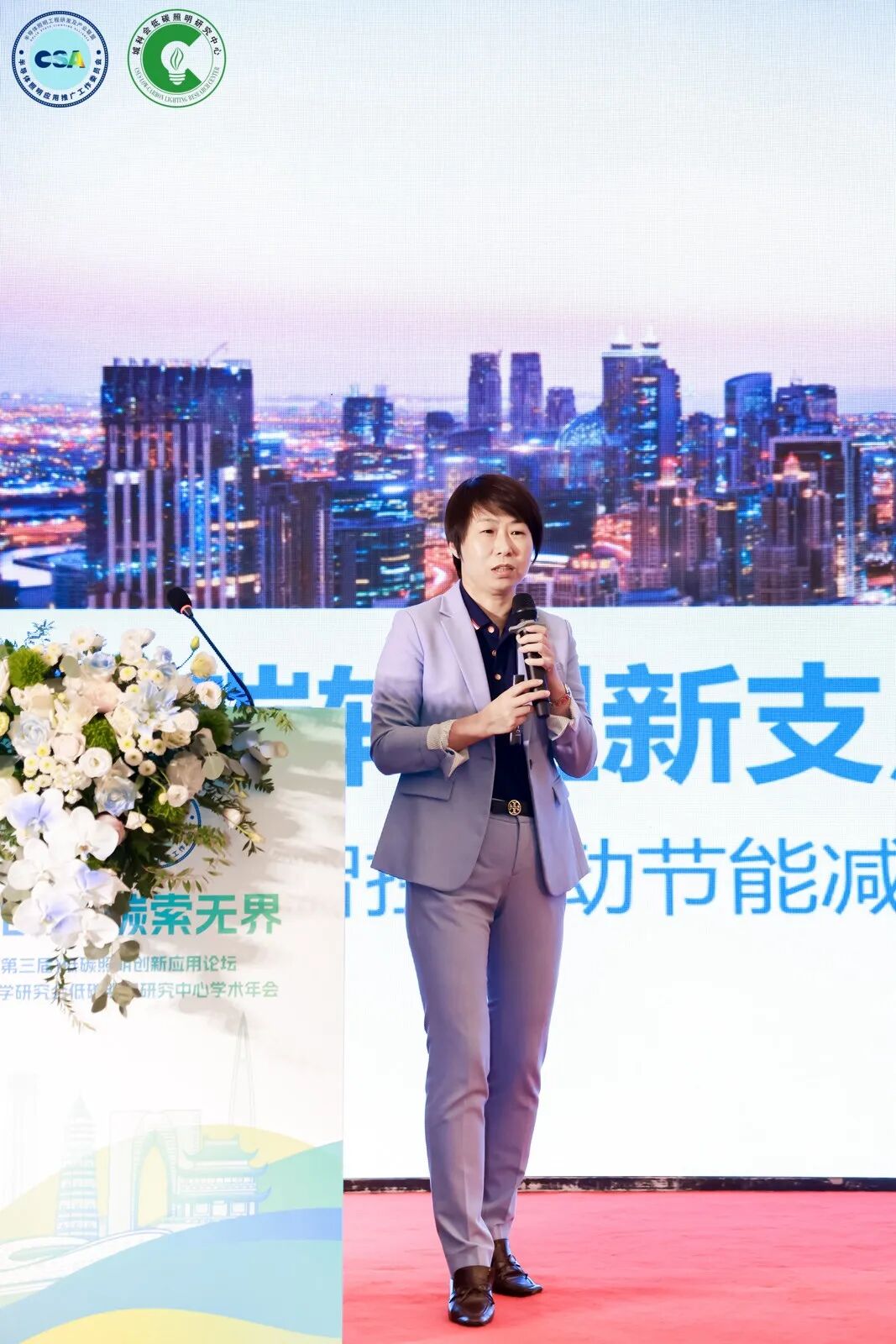 10 月 15 日下午,季扬总经理在论坛上发表《低碳转型新支点——智控驱动节能减排技术创新及多维度增值》主题演讲。她指出,在“双碳”目标与智慧城市建设加速推进的背景下,传统照明驱动技术面临能耗高、智能化水平低、增值服务能力弱等挑战,而“硬件融合+软件赋能”的一体化解决方案是破局关键。
