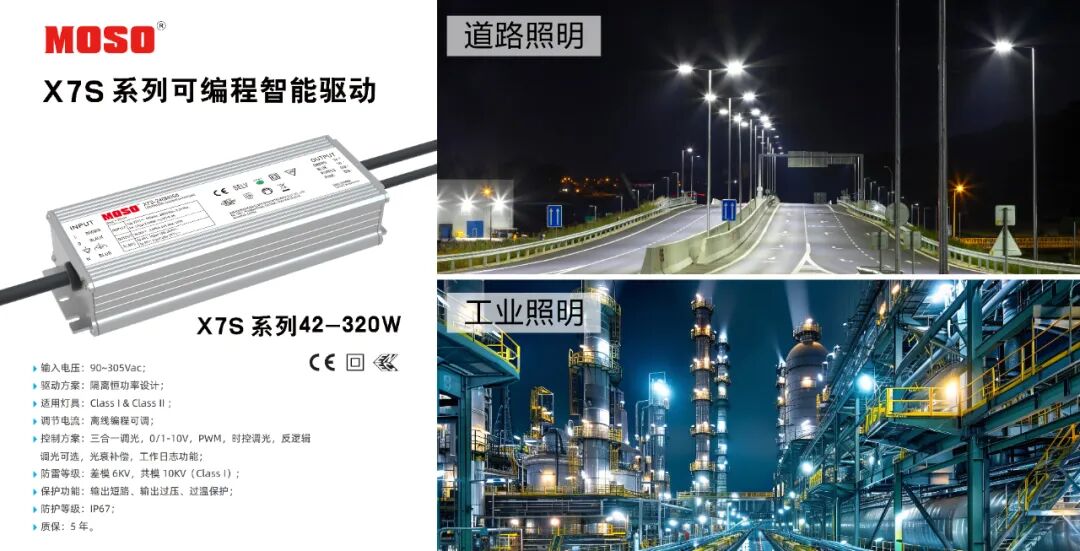 · 智控一体化电源iX7:打破传统分体设计局限,融合“调光电源”与“智能控制”双功能,支持OTA远程升级与自动组网,实现从“被动维修”到“主动预警”的转变,为城市照明构建安全监测防御网。