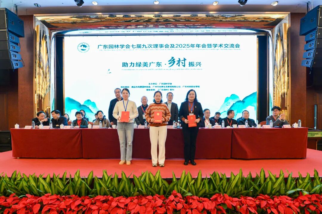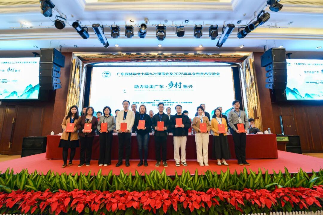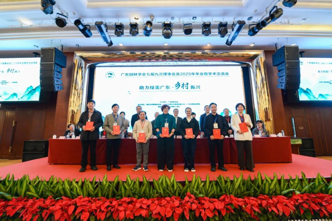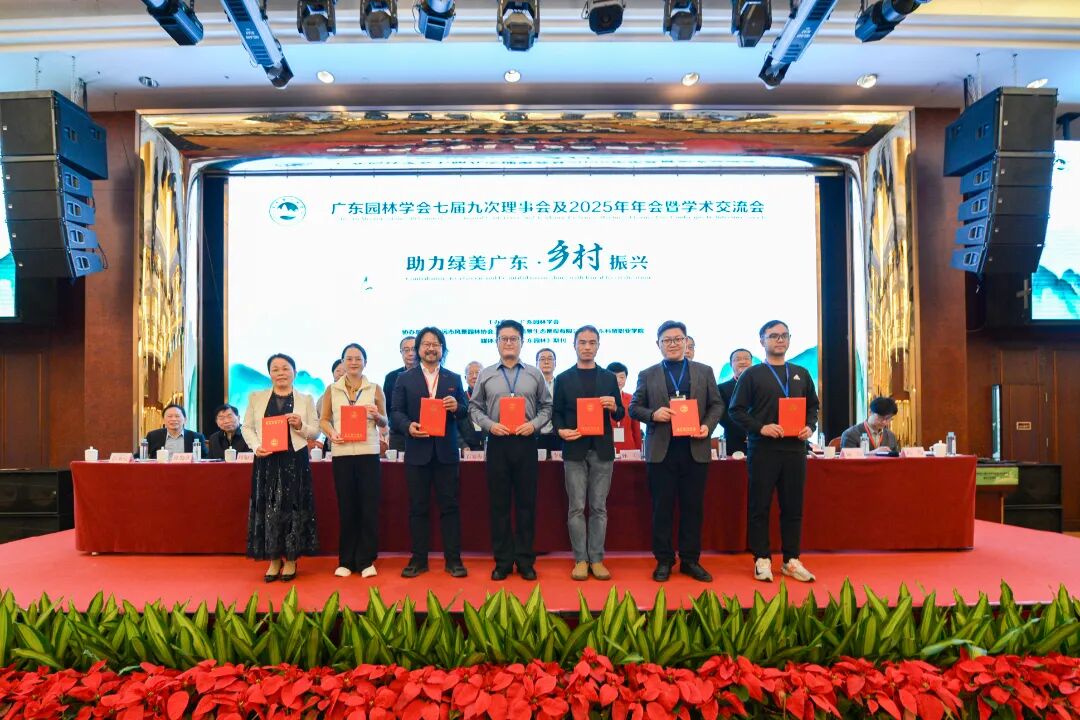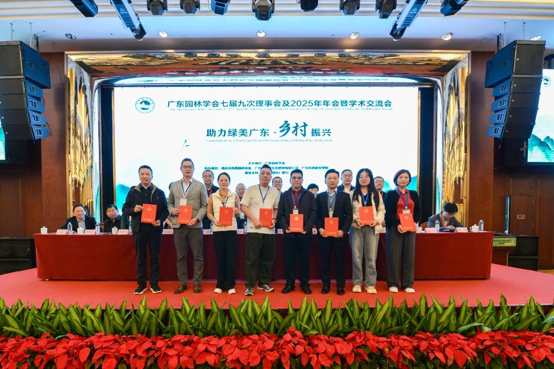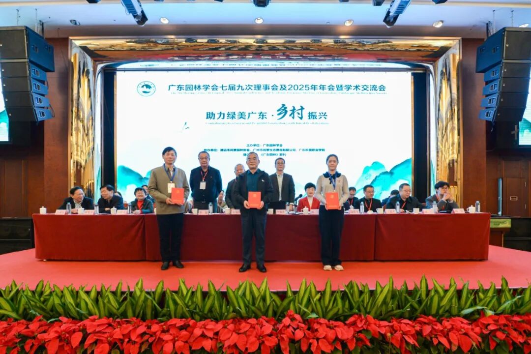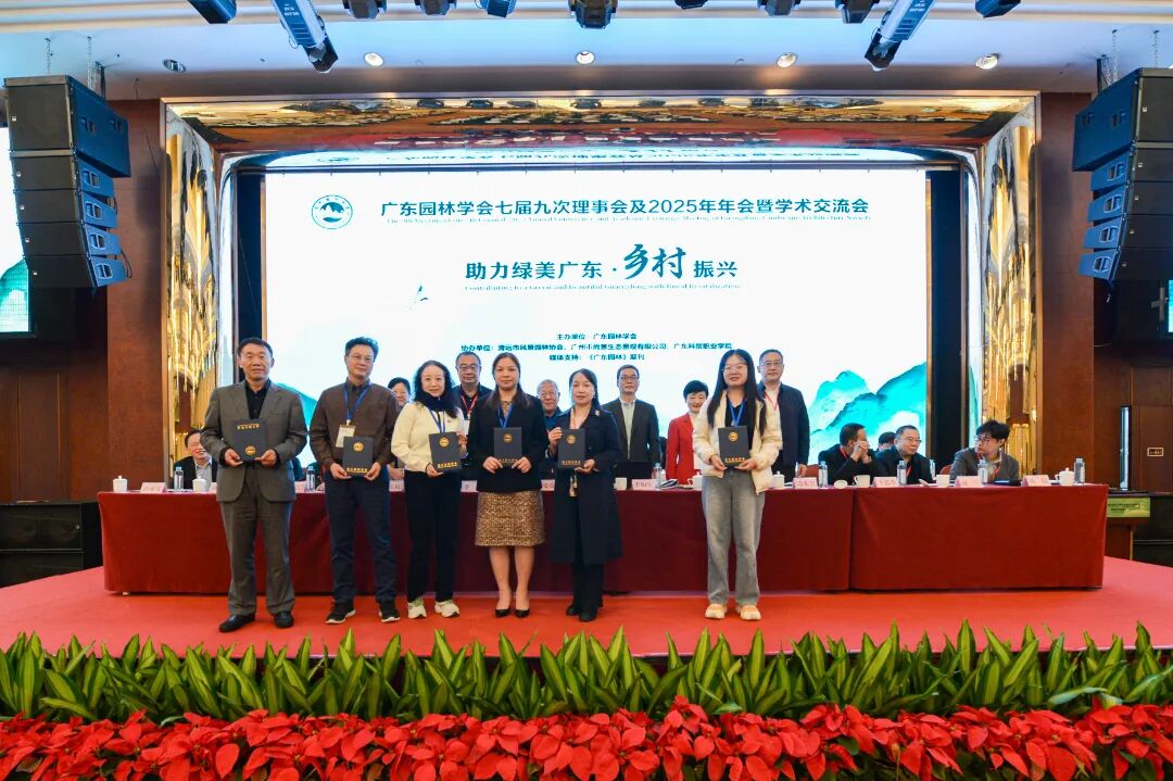 2025年12月12-14日, 广东园林学会 七届九次理事会及2025年年会暨学术交流会在清远隆重召开, 中国风景园林学会 理事长李如生、 广东省科学技术协会 学会学术部三级调研员邵宝杭、 广州市林业和园林局 党组书记、局长孙玥等出席盛会,学会理事会成员、会员单位代表等约300人参加会议。 广东园林学会 副理事长、 普邦股份 董事、规划设计事业部总裁叶劲枫, 广东园林学会 常务理事兼副秘书长、 普邦股份 首席专家谭广文, 普邦股份 研究院院长彭会兰、研究院副院长李银、景观规划设计院副院长蔡鑫等一行参会。会上, 普邦股份 荣获多项荣誉。