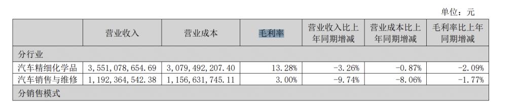 2022 年四季度末,公司毛利率为 11.13%,延续下滑趋势。其中,公司汽车精细化学品、汽车销售和维修这两大业务的毛利率均处于下滑状态,分别下滑了 2.09 个百分点、1.77 个百分点。对比同行来看,2022 年,卓越新能、鲁北化工毛利率分别为 11.75%、11.63%,均高于德联集团。