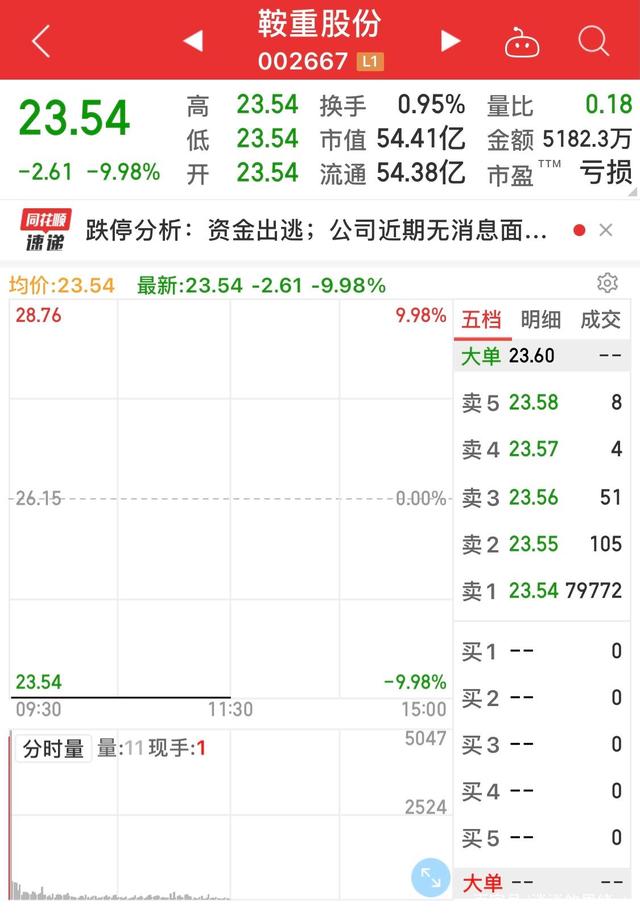 假重组?吓得屁滚尿流,鞍重股份全市唯一跌停股,而且是一字跌停,只因回复了问询函,股票就一泻千里,好像质疑是真的一样。