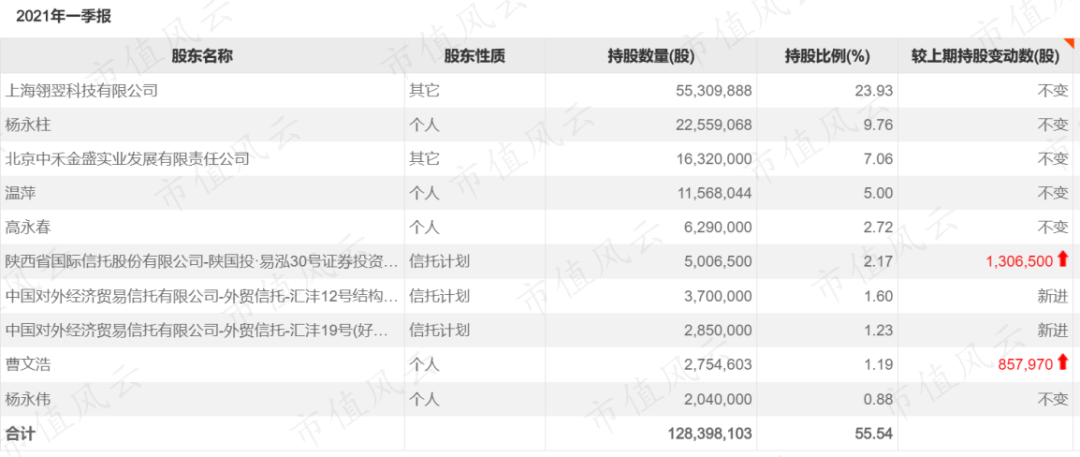 此外,在公司股价大跌时,汇沣12号和19号两家信托计划新进前十大流通股东榜单,陕国投的易泓30号信托计划趁机继续加仓。