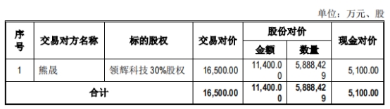 根据威领股份于9月5日公布的《发行股份及支付现金购买资产并募集配套资金报告书(草案)(上会稿)》,本次交易方案由发行股份及支付现金购买资产以及募集配套资金两部分组成。本次交易威领股份向熊晟发行股份及支付现金购买其持有的领辉科技30%股权。本次交易前,公司通过子公司已持有领辉科技70%股权,交易完成后,公司将持有领辉科技100%股权,领辉科技将成为公司全资子公司。