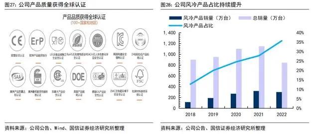 作为国内最大的冰箱 ODM 生产商,公司产品品质已通过市场检验获得全球大量客户的认可,产品可满足严苛的欧洲能效标准,产品通过全球多个知名品牌设立的独立实验室测试,获得全球 100 多个国家和地区的安全、环保、能耗等认证。