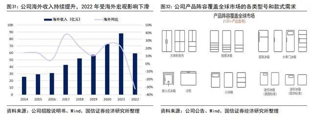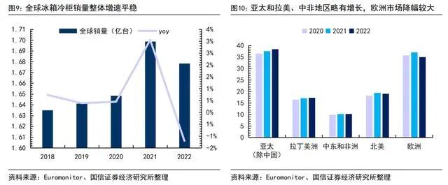 欧洲市场低迷下,向美洲、亚洲等地区扩市场。欧洲是公司最大的出口市场,2022 年在地缘冲突+海外通货膨胀+库存压力三重压力下,国内出口欧洲的冰箱冷柜量下滑 42%,但区域方面公司积极开拓新市场,并在亚太区取得了 10%增长的成绩。