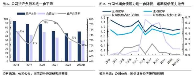公司 2022 年长期负债占比为 0.97%/-3.19pct,主要系长期应付款的降低,公司近年来大力清理有息负债,带息债务/股权比例大幅下降至 11%,远低于 2018 年历史高峰的 66%,财务压力进一步降低。