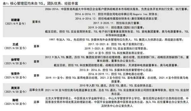 TCL 高管入主进一步厘清和整改公司相关业务,有望明晰公司长期战略规划、把握未来发展方向。奥马冰箱的管理层则依然为其创始团队,董事长为创始人蔡拾贰,总裁为创始人之一的姚友军。