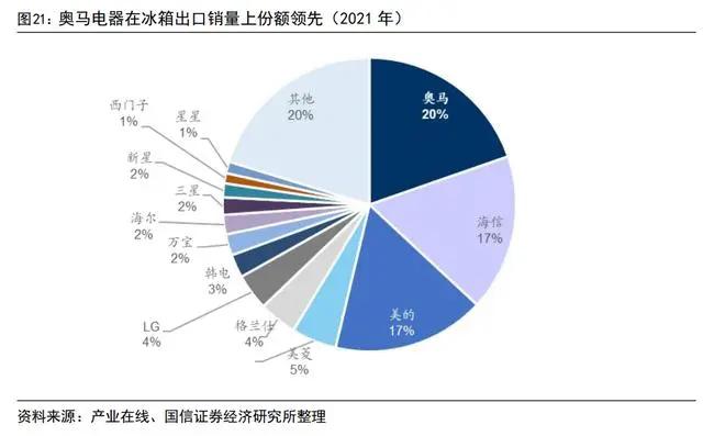 奥马电器连续 14 年成为我国冰箱出口销量第一,领先地位稳固。