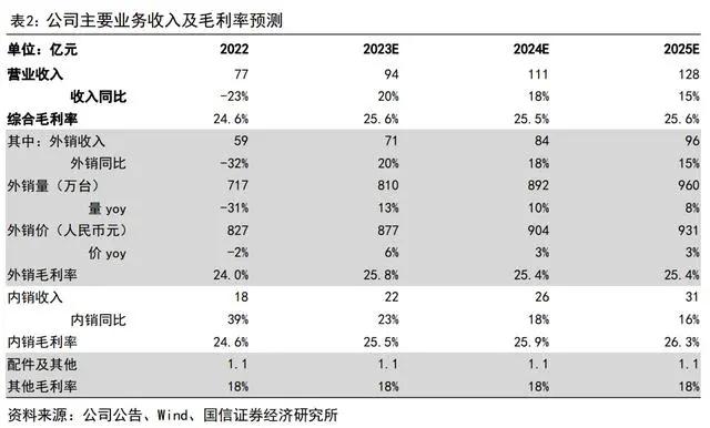 综合毛利率在 2023 年原材料价格趋稳和出厂价调整之后,逐渐恢复至 2019 年之前较为正常的水平,预计 2023-2025 年毛利率为 25.6%、25.5%、25.6%。