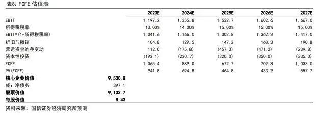 根据以上主要假设条件,采用 FCFF 估值方法,得出公司价值区间为 7.91-9.02 元,对应市值为 86-98 亿元。