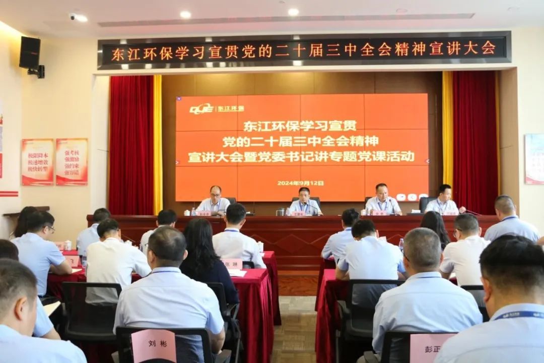 公司党委书记、董事长王碧安在公司总部围绕党的二十届三中全会精神的丰富内涵和精神实质作了系统宣讲和深入阐释。王碧安强调,党的二十届三中全会把深化国资国企改革纳入全面深化改革战略全局,鲜明标定了国有企业在新征程上深化改革的方位、前行的节奏和工作的重点,进一步强调了推动国有资本和国有企业做强做优做大这个总体目标。公司各级要以改革到底的坚强决心,以钉钉子精神抓好各项任务的落实,一要坚决贯彻落实党中央决策部署和广晟控股集团党委部署要求,以改革的思维、办法、魄力和担当,不断优化、深化、细化公司各项改革举措。二要深入践行FAITH经营理念,以“三极四强”工作思路,敢于斗争,自我加压,努力实现东江环保高质量发展。三要抓好融会贯通,把贯彻落实全会精神与做好当前工作紧密结合起来,锚定完成全年目标,冲刺四季度,把学习成果体现到实际行动中、落实在发展成效上,以谱写东江环保高质量发展新篇章的实干实绩来检验学习成果,为广晟控股集团加快建设成为世界一流企业贡献东江环保力量。