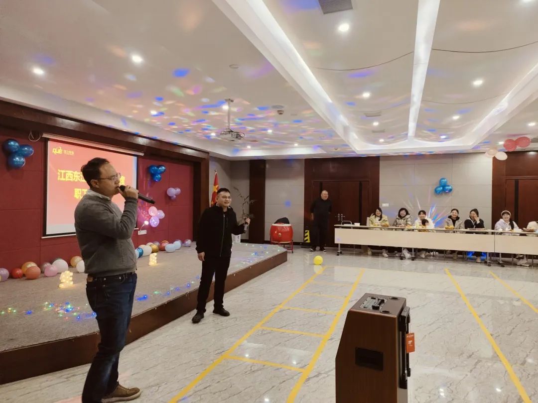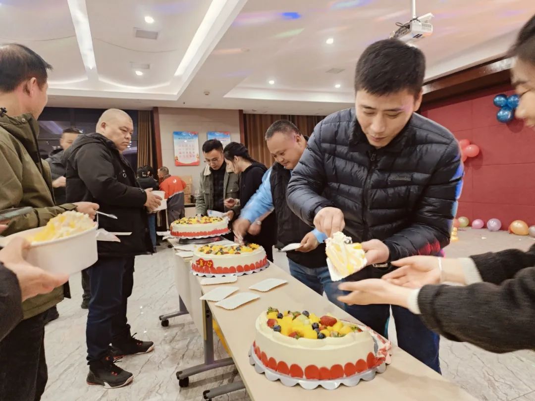 随后,生日会进入高潮,欢声笑语回荡在每个角落。在欢快的游戏环节中,大家展现出团队的默契配合,尽情释放着活力;在热情洋溢的献唱时刻,动人的歌声传递着真挚的情感,每一个音符都跳跃着对公司的热爱与祝福。
