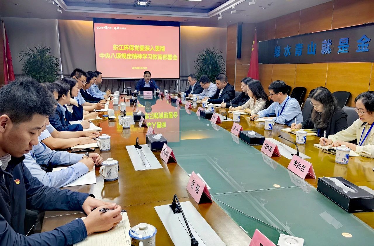 3月27日上午,东江环保党委召开深入贯彻中央八项规定精神学习教育部署会,深入学习习近平总书记关于深入贯彻中央八项规定精神学习教育的重要讲话和重要指示精神,贯彻落实中央党的建设工作领导小组会议和中共中央办公厅《关于在全党开展深入贯彻中央八项规定精神学习教育的通知》精神及省国资委和广晟控股集团党委有关工作部署要求,对全公司开展学习教育工作进行动员部署,全面启动相关工作。公司党委书记、董事长王碧安主持会议并讲话。