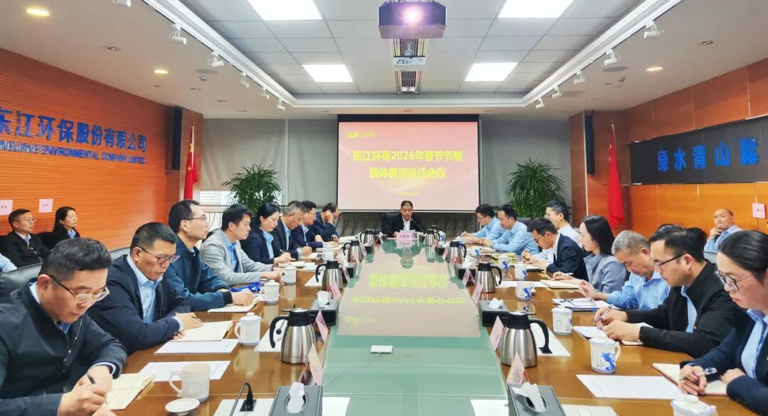 1月29日,东江环保召开2026年春节节前集体廉洁谈话会议,深入学习习近平总书记在二十届中央纪委五次全会上的重要讲话精神和全会精神,切实增强干部职工廉洁自律意识,营造风清气正的节日氛围。公司党委书记、董事长王碧安主持会议并讲话,党委副书记、董事、总裁李向利传达学习习近平总书记在二十届中央纪委五次全会上的重要讲话精神和全会精神,以及中共中央纪委《关于做好2026年元旦春节期间正风肃纪工作的通知》。公司领导班子成员参加会议。