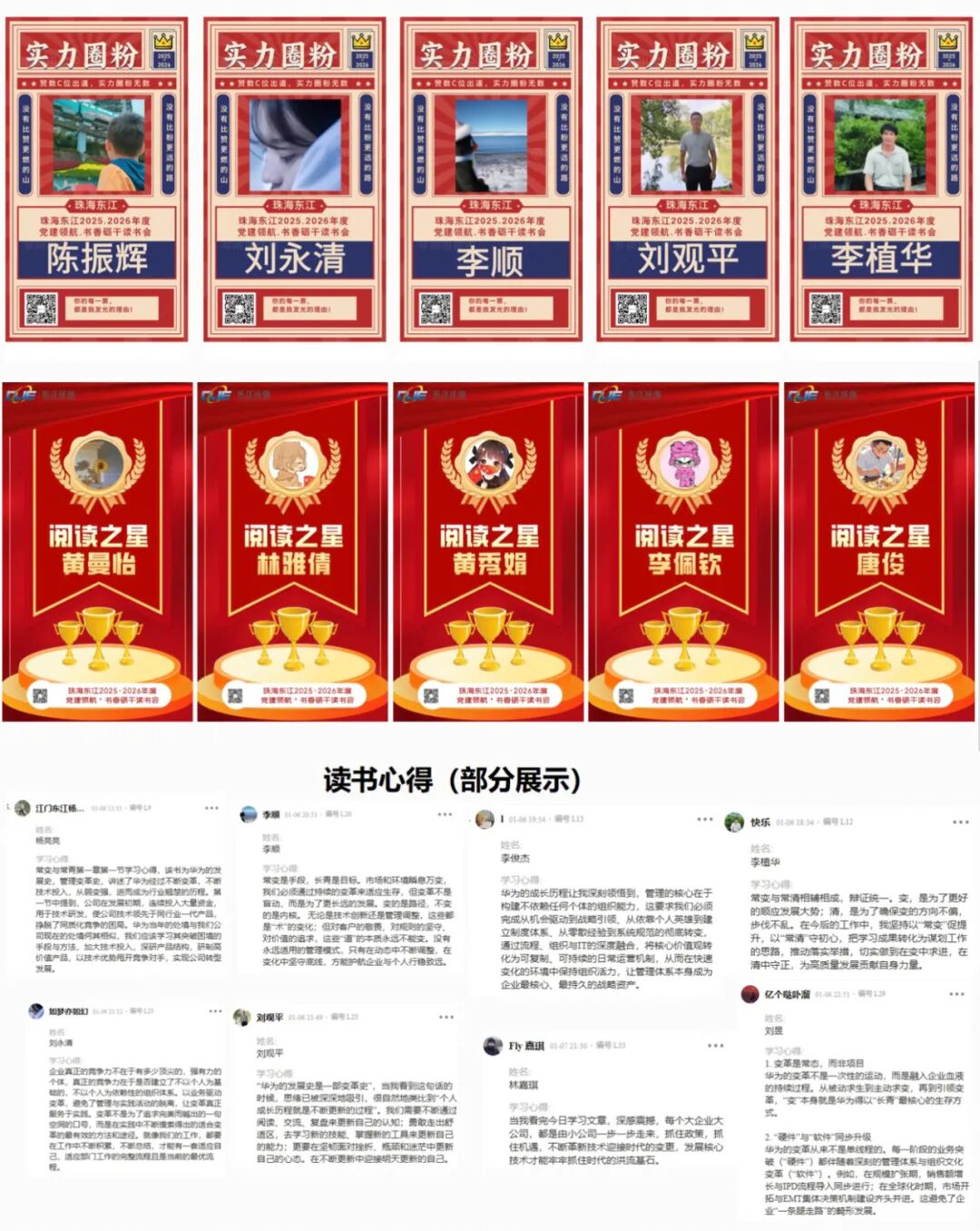 珠海东江党总支以深化人才培养、建设学习型组织为目标,自2025年12月起启动为期一年的“党建领航·书香砺干”读书会活动。活动面向珠海东江本部及托管企业全体党员、骨干及后备人才,全年规划7期,精选《未来产业》等理论与实践相结合的7本书籍,通过“线上打卡+线下分享”“个人精读+集体分享”相结合的模式,引导学员将阅读思考与岗位实践、管理提升紧密结合。截至目前,珠海东江党总支已成功举办两期学习活动,学员累计完成打卡近400次,有效形成了比学赶超、思想碰撞的良好学习氛围。