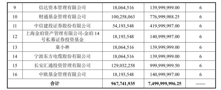 多家基金公司也在列,财通基金获配7.77亿元,中欧基金获配1.41亿元。