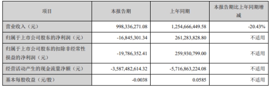 今年一季度,西部证券实现营业收入9.98亿元,同比减少20.43%;实现归属于上市公司股东的净利润-1684.53万元,上年同期为2.61亿元;实现归属于上市公司股东的扣除非经常性损益的净利润-1978.64万元,上年同期为2.60亿元;经营活动产生的现金流量净额-35.87亿元,上年同期为-57.17亿元。