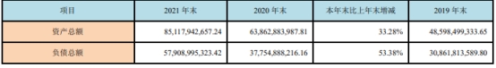 截至2021年末,西部证券资产总额851.18亿元,同比增长33.28%;负债总额579.09亿元,同比增长53.38%;资产负债率为61.29%,较上年末增加13.21个百分点。