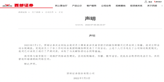 针对通信首席傅鸣非的不当言论,西部证券目前已对其进行合规问责,并已解除其劳动合同。