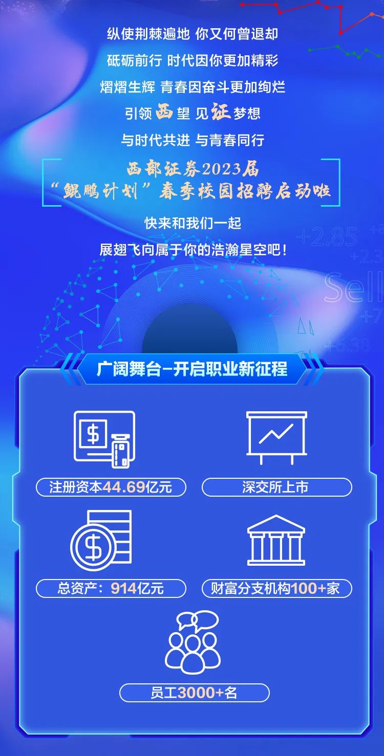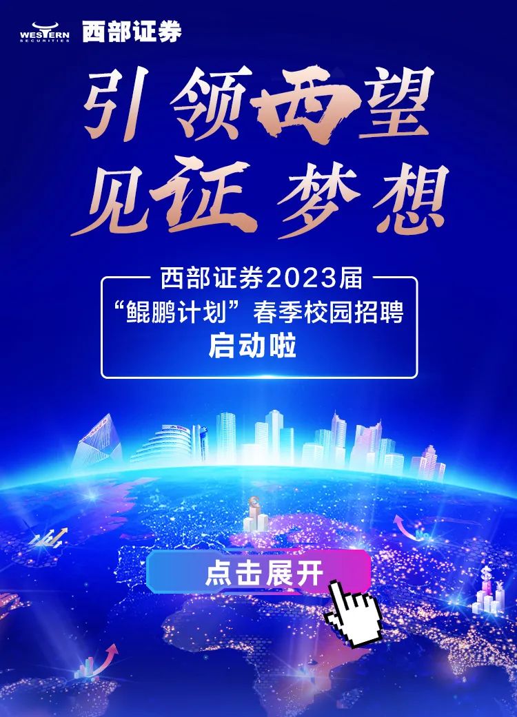 西部证券2023“鲲鹏计划”春季校园招聘正式启动啦!