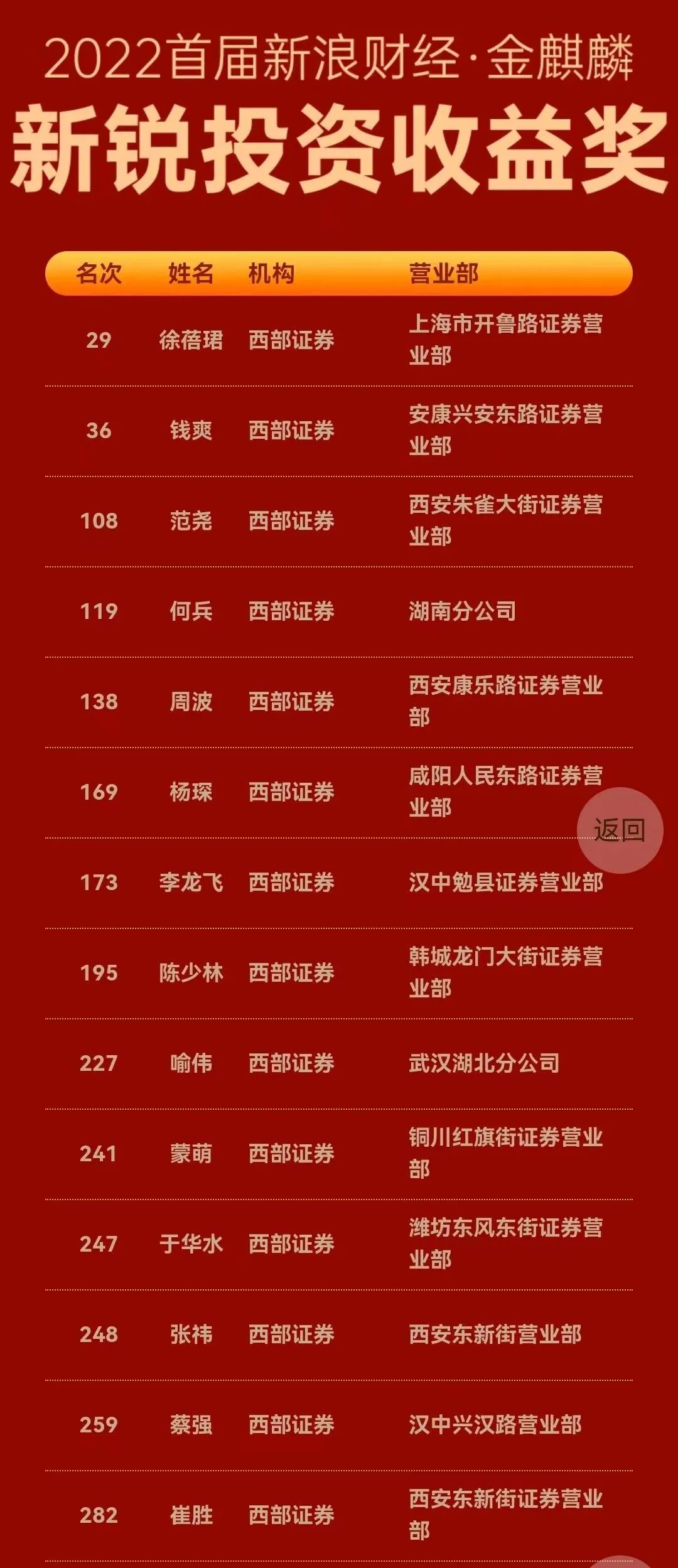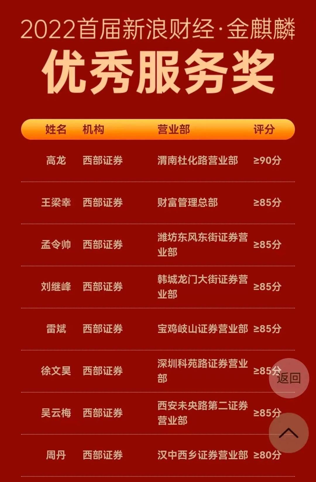 西部证券始终重视投资顾问团队的建设与培养,打造“点将台”数字投顾平台,持续为投顾业务赋能,推动投顾团队投研能力、资产配置能力、客户服务能力全方位提升。此次评选结果也充分展现了投顾团队专业的投资能力与优秀的服务素养。
