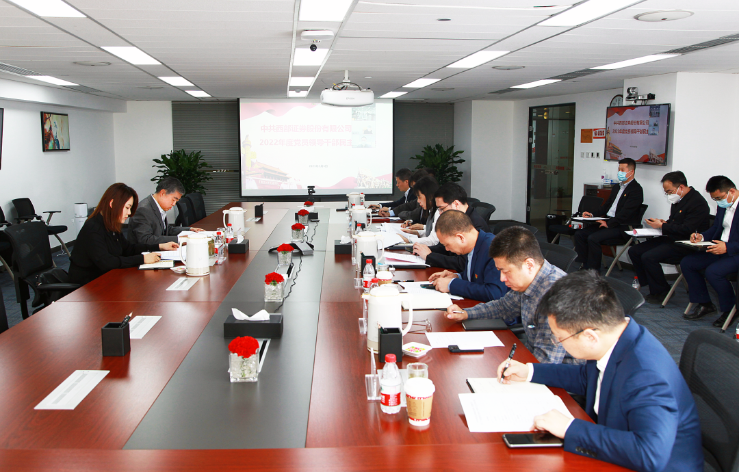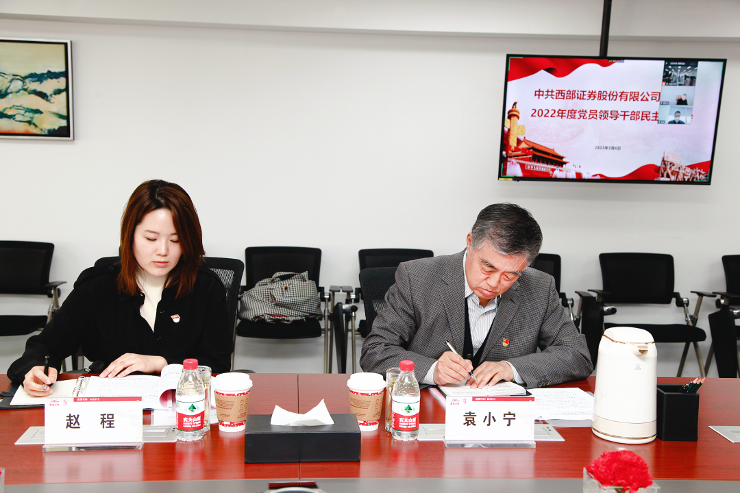 2023年3月6日,西部证券公司党委召开2022年度党员领导干部民主生活会。会议围绕全面贯彻习近平新时代中国特色社会主义思想,深刻领悟“两个确立”的决定性意义,增强“四个意识”、坚定“四个自信”、做到“两个维护”,团结带领党员干部群众以奋发有为的精神贯彻落实党的二十大作出的重大决策部署这一主题,紧密结合公司领导班子和班子成员个人思想工作实际,进行自我检查与剖析,开展批评与自我批评。西部证券公司党委书记、董事长徐朝晖主持会议,公司领导班子成员参加会议。集团党委2022年度党员领导干部民主生活第一督导组组长、党委书记、董事长袁小宁莅临会议并作点评讲话。