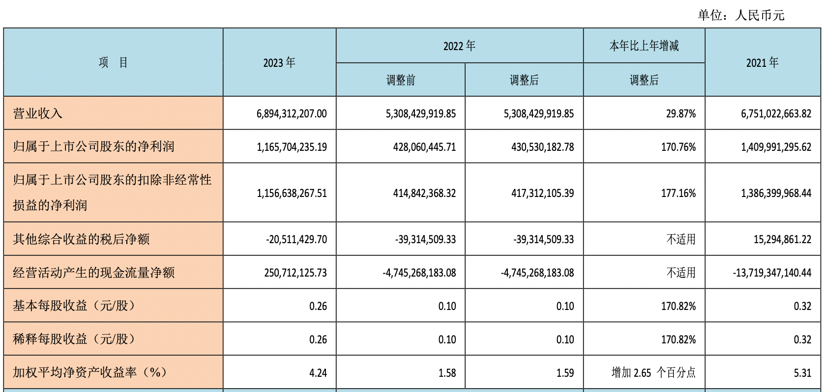 报告显示,西部证券2023年实现营业收入68.94亿元,同比增长29.87%;同期实现净利润11.66亿元,同比增长170.76%;反映公司日常经营状况的扣非净利润为11.57亿元,同比增长177.16%。