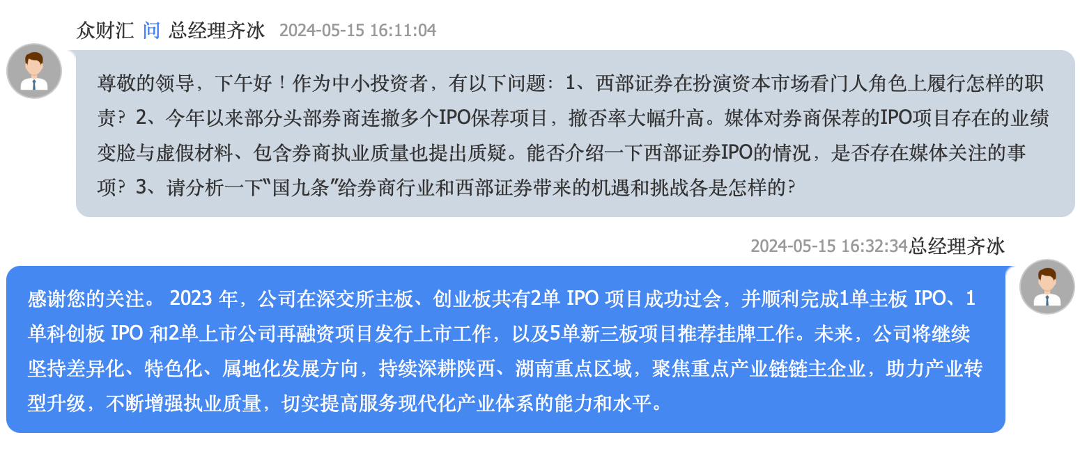 在2023年度业绩说明会上,西部证券的总经理齐冰表示:“公司数字化转型新生动能正与公司传统业务一道加快形成发展合力。”
